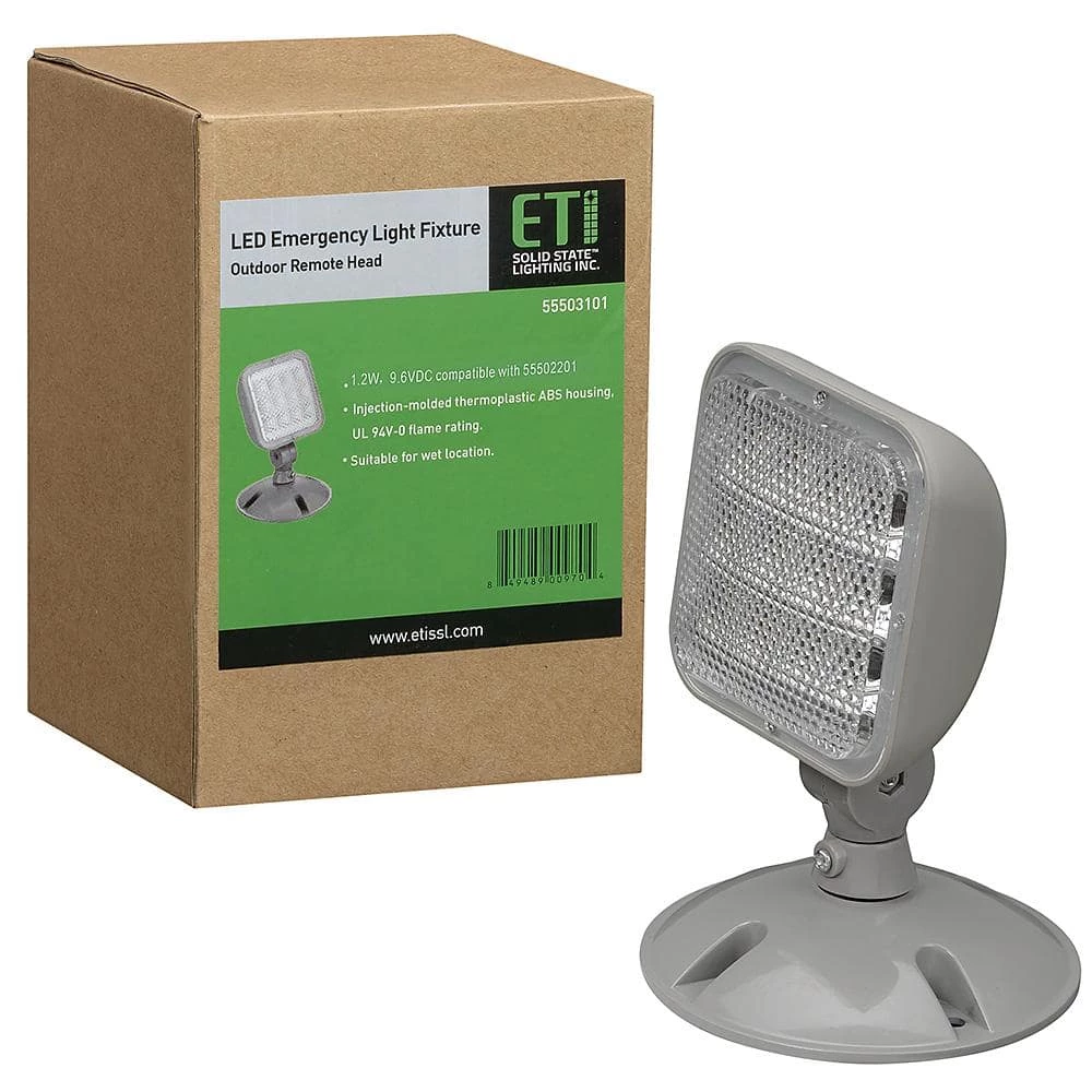 ETi Single Head Gray LED Emergency Light is used as a means of egress – leading to a walkway, street or general open space lighting the path to safety. It can be mounted above a door or wall mount along a hallway or stairway. The head is fully adjustable providing crystal-clear illumination and made of injection-molded thermoplastic ABS housing, UL 94V-0 flame rating. It is in accordance with NFPA 101, OSHA and UL924 Listed emergency codes and Title 20 compliant. This is a maintenance free fixture with no bulbs to replace. Great for offices, hallways, stairways, schools, universities, daycare facilities, adult living communities, airports, event buildings, outparcels, loading docks, warehouse aisles and more.