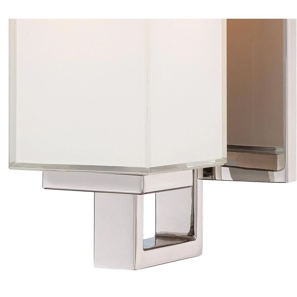 The George Kovacs collection of wall sconces features a broad range of high-quality lighting fixtures produced with a mid-century modern aesthetic. This wall sconce has a combination of a Polished Nickel finish and warm Mitered White glass enhancing hallways, bedrooms, baths and more. With their famous quality, the George Kovacs wall sconces provide ambient and general lighting, perfect for any modern setting.