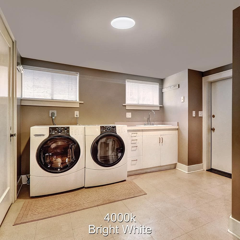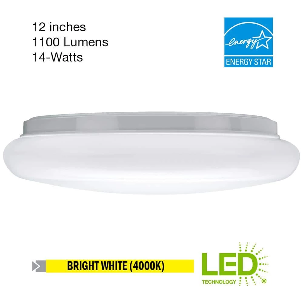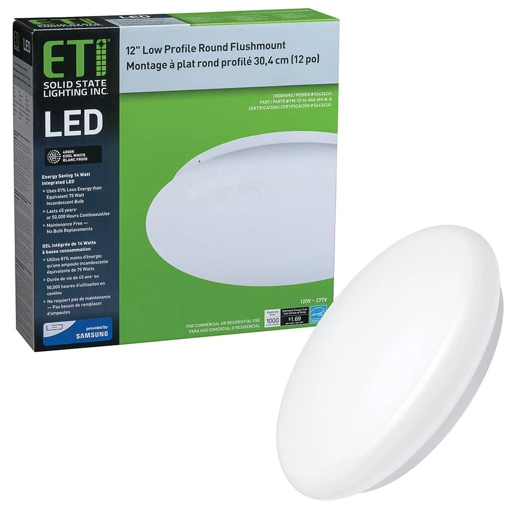 ETi’s Low Profile 12 in. LED Flush Mount Ceiling Light is designed to easily convert outdated incandescent bulbs into an energy-efficient integrated LED fixture. It emits crystal clear 1000 Lumens of 4000K Bright White color temperature light output. While using only 14-Watts of electricity, this fixture uses 83% less energy replacing a power-draining 75-Watt incandescent bulb. It is easy to install, has long-lasting superior light engine and is maintenance free with no bulbs to replace. Ideal for kitchen, pantry, bedroom, bathroom, closet, laundry room, stairway, hallway, attic, basements, playroom or retail/boutique.