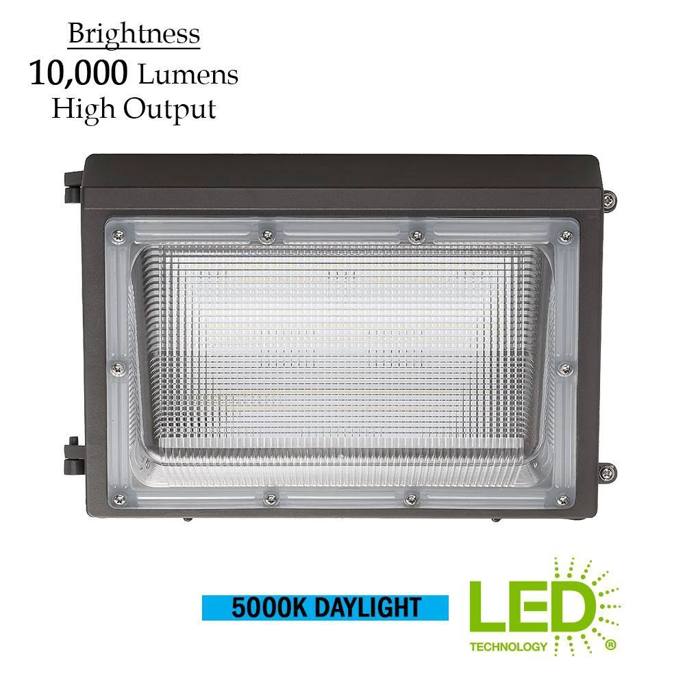 ETi’s 18 in. Integrated LED Outdoor Security Wall Pack Light is the perfect solution for your outdoor lighting needs. It ensures safety, awareness, prevents possible injuries, able to reduce insurance rates and can increase property value. This energy-efficient Wall Pack is ideal for replacing outdated 400-Watt metal halide fixtures. It emits high output 10,000 Lumens of brightness with premium Samsung LED technology illuminating 5000K Daylight using only 92-Watt of electricity. Photocell compatible as well. It is maintenance free with no bulbs to replace. Ideal for street lighting, parking lot, pedestrian pathway, landscape lighting, playground, school grounds, alleyways, office building entryways or clubhouse.