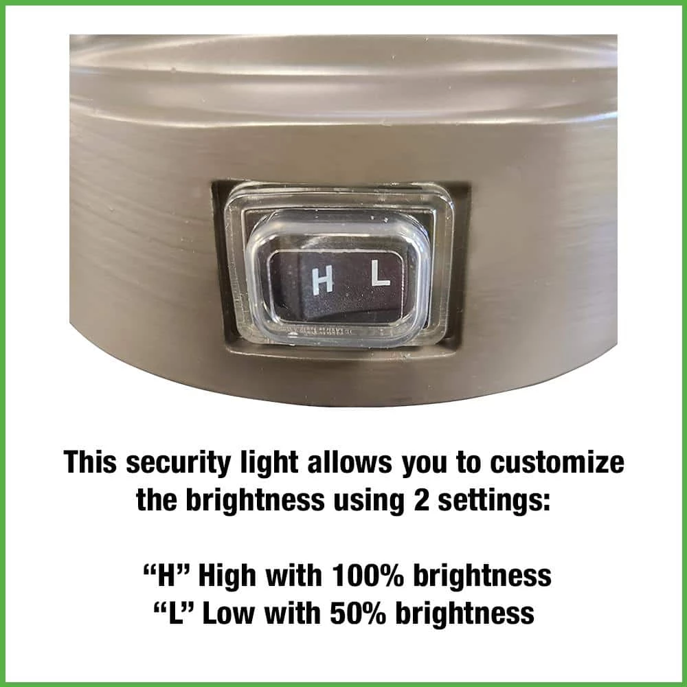 ETi’s 2-Head Bronze Integrated LED Security Light with Lumen Boost and Dusk-to-Dawn operations. Using the toggle switch at the bottom of the fixture, the Lumen Boost feature offers you the choice to select the brightness of lighting coverage from 1200 to 2400 Lumens. Or choose Dusk-to-Dawn function which has the lights automatically turn on at sunset or turn off at sunrise. This fixture illuminates 4000K Bright White color temperature of light output using only 28-Watts of electricity. It is Energy Star rated and starts reliably down to extreme cold weather to -40°F! Installing this security flood light ensures safety and awareness, prevents possible injuries and increases property value.