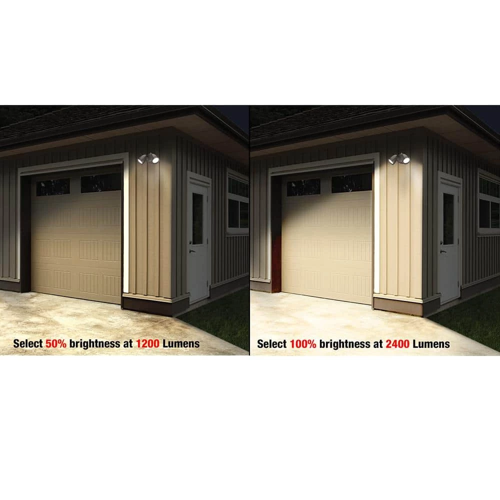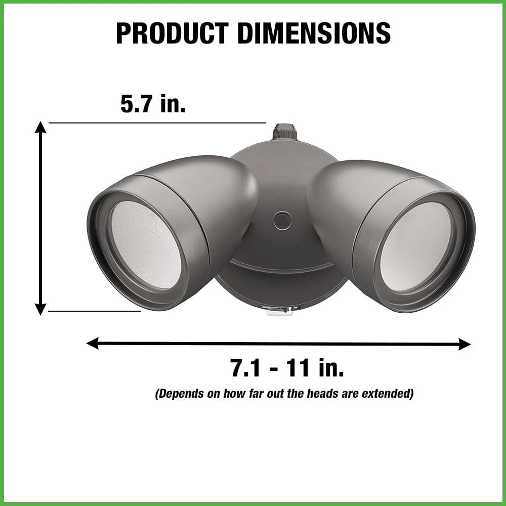 Did you know security lighting is highly suggested by most neighborhood watch, HOA, police and insurance companies? ETi 2-Head Bronze Integrated LED Security Light is your best solution for upgrading your outdoor lighting. Our Lumen Boost feature offers you the choice to select the brightness of lighting coverage. Prior to installation, use toggle switch at the bottom of the fixture to select 1200 to 2400 Lumens. Or choose Dusk to Dawn function which has the lights automatically turn on at sunset or turn off at sunrise. This security light is ideal for sub-zero temperatures all the way down to -40°F and maintenance free with no bulbs required which comes in handy during those extreme cold winters! Installing this security flood light ensures safety and awareness, prevents possible injuries and increases property value.