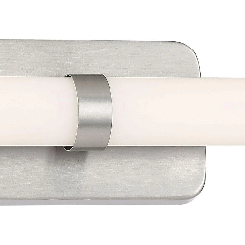 The sleek, modern design of the LED Bath Bar by George Kovacs features a rounded Etched White glass and rectangular wallplate. A Brushed Nickel band and endcaps give the shade definition as it offers widespread LED illumination to the surrounding area. Its structural simplicity makes it highly versatile, mounting either vertically or horizontally in a variety of bathroom settings.