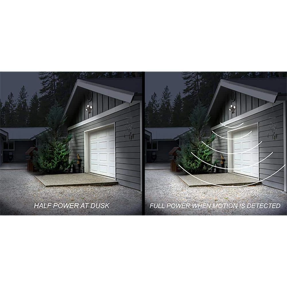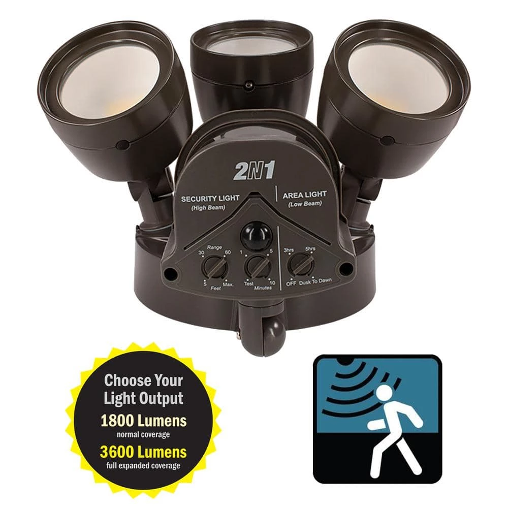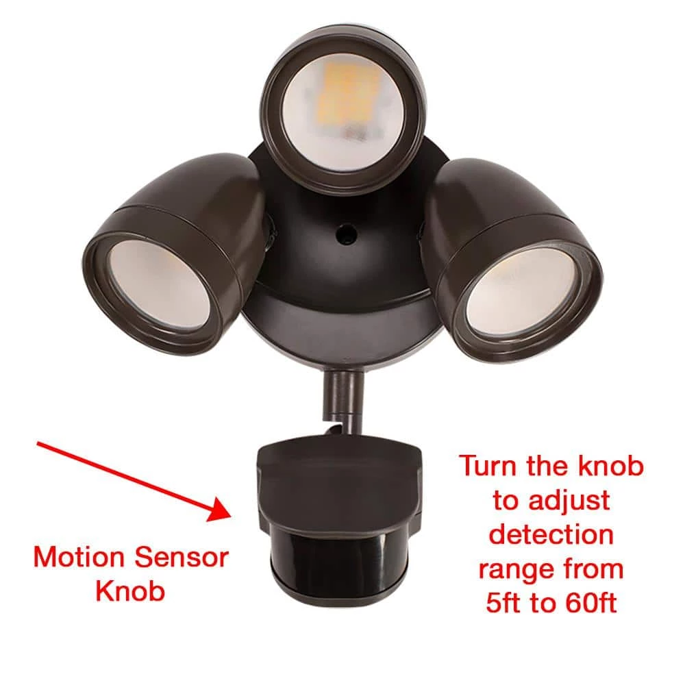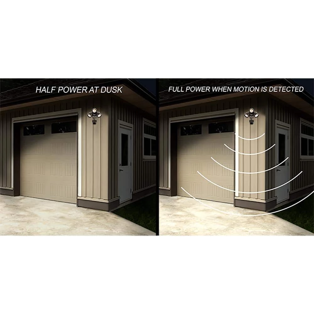 - Adjustable 3-Head Dusk-to-Dawn with motion sensor all weather LED security light