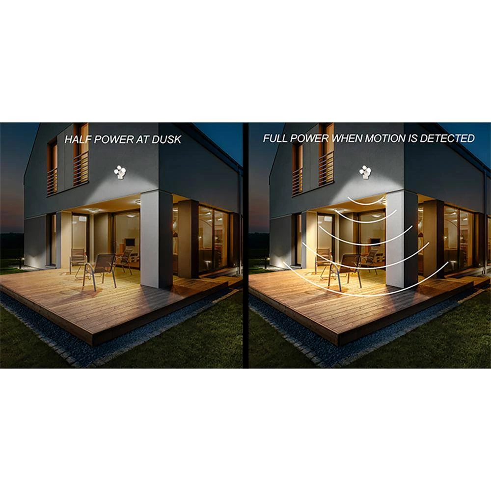 - LUMEN BOOST Feature: 1800 Lumens of brightness is main light coverage, yet when motion is detected, lumens boost up to 3600 of full power light coverage