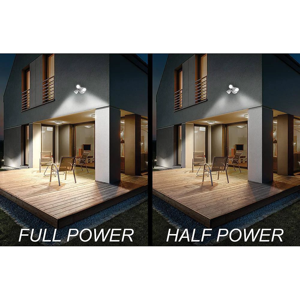 Security lighting is highly suggested by most neighborhood watch/HOA’s, police and insurance companies. ETi’s 3-Head Integrated LED Security Flood Light with Lumen Boost and Dusk-to-Dawn features is the perfect solution for your outdoor lighting needs. Lumen Boost offers partial to full light output emitting from 1800 Lumens to 3600 Lumens of brightness. You choose by pushing the switch on the bottom of the fixture. ETi uses only premium Samsung LED technology for crystal clear low glare illumination. Dusk-to-Dawn Photocell offers to customize the lights to either automatically turn on at sunset, turn off at sunrise or stay on through the night. This light emits 4000K Bright White color temperature using only 42-Watt of electricity. As this light will enhance your curb appeal, it ensures safety, awareness, prevents possible injuries and increases property value. Ideal for driveways, backyards, decks, porches and dark corners on side of house. ETi’s 3-Head security light will provide your family triple peace of mind.