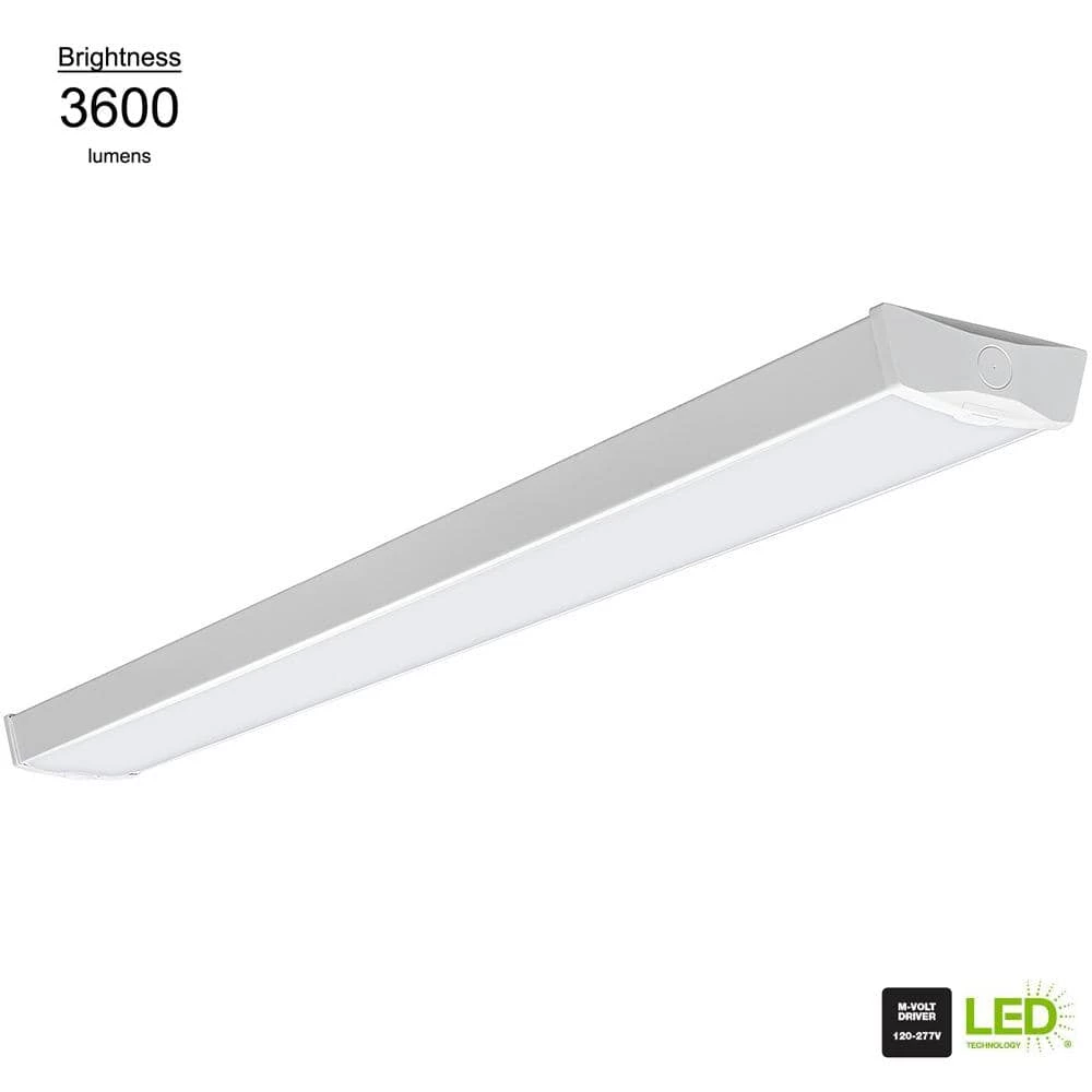 ETi’s 4 ft. LED Wraparound Ceiling Light is slim compact and powerful linear fixture designed to replace your traditional fluorescent light with cool energy-efficient LEDs. This light emits 3600 Lumens of brightness with 4000K Bright White light output using only 40-Watts of electricity; saving energy, the environment and your monthly utility bill. It is lightweight, easy to install and maintenance free with no bulbs to replace. Suggested applications are closet, laundry room, kitchen, basement, stairway or workbench.