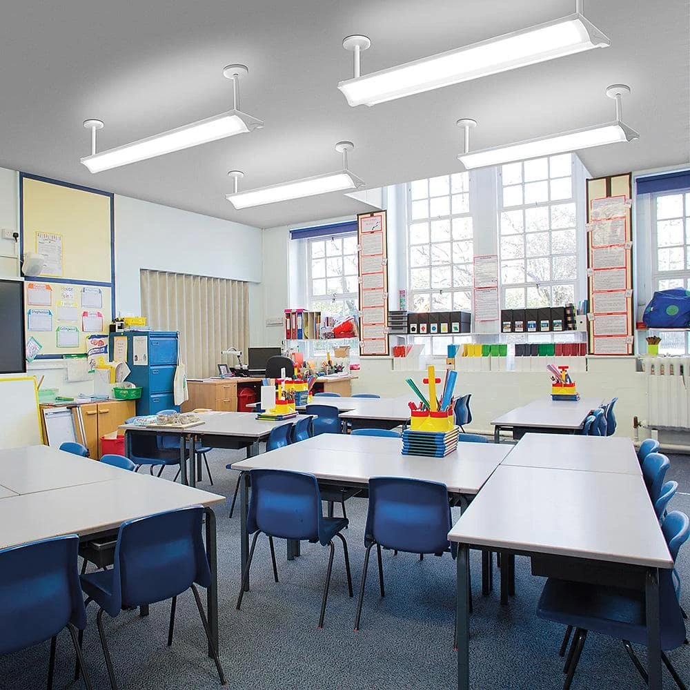ETi’s 4 ft. Integrated LED Direct Indirect Architectural Wrap Light provides efficient and economical illumination for a wide range of ambient applications. Its unique architecture makes for a very flexible project solution suitable for remodel, retrofit or new construction, commercial and institutional projects. This wrap series can provide direct illumination only (3,977 lumens), indirect illumination only (2,725 lumens) or both (6,702 lumens) that is easily controlled by simply toggling the wall switch on & off within 3-seconds of each other. The direct illumination LED array is paired with a low-glare diffuse optical lens system that delivers an extremely uniform light distribution optimized for most general open ambient applications. A separate indirect LED array provides soft general up-light illumination helping to create a warm and inviting architectural effect and feel within the space. Ideal applications are conference room, classroom, lobby, reception area, waiting room, showroom, retail aisles, craft storeroom or small warehouse.