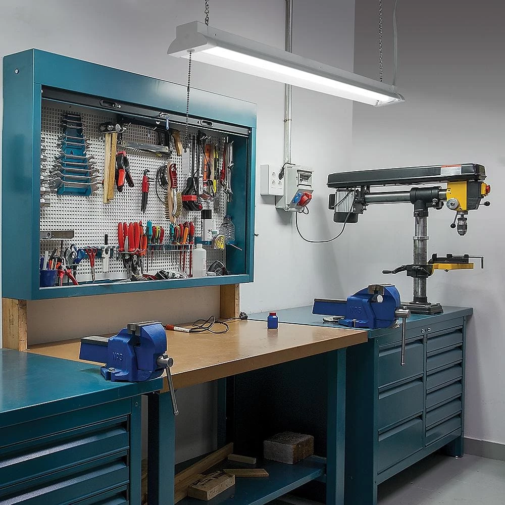 ETi’s 40 inch LED Shop Light is designed to replace outdated fluorescent light with an energy-efficient integrated LED fixture. It is simple to operate with an on/off pull chain and finial hardware for an easy grab. It emits 2800 Lumens of brightness with 4000K Bright White light output using only 30-Watts of electricity. Ideal for a wide range of work areas; tabletop, utility room, basement, garage, workshops or warehouse.