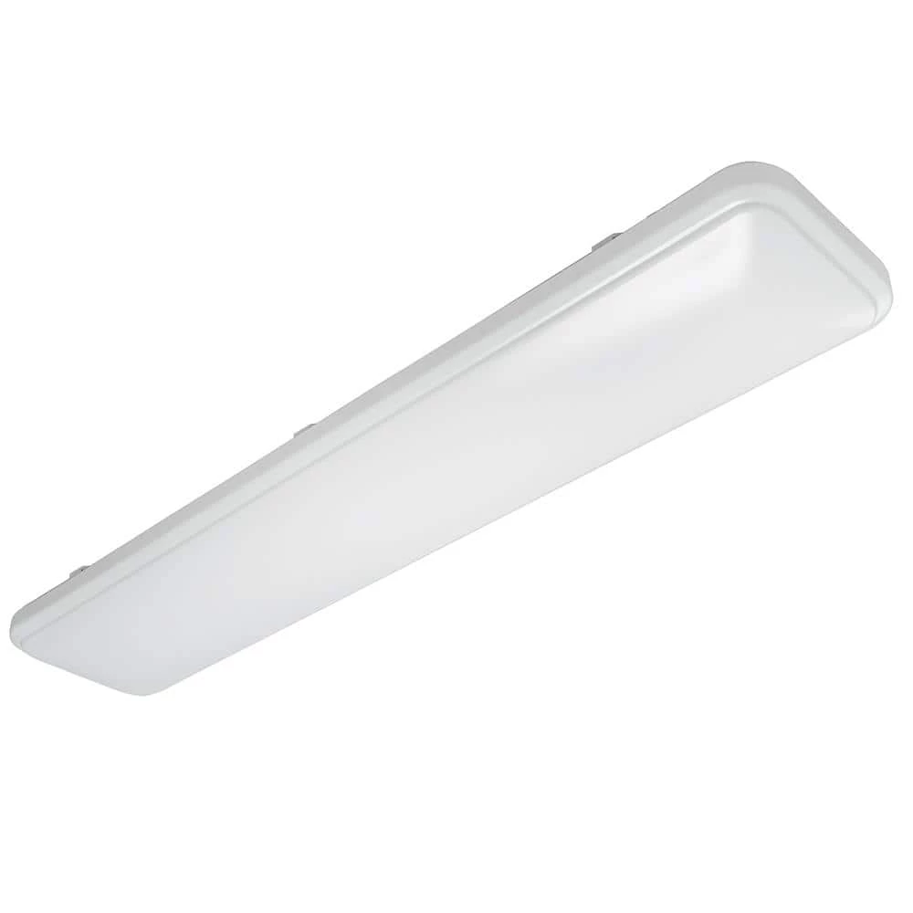 ETi 4 ft. x 10 in. Rectangular Light Fixture LED Flush Mount is designed to replace outdated 100-Watt fluorescent tube and uses 60% less energy compared to conventional lighting units. It has a durable acrylic stepped lens with crystal-clear illumination and no yellowing over time. Its lightweight construction makes for easy installation while the LED technology ensures eco-friendly, long-lasting service and is maintenance free with no bulbs to replace. Ideal for kitchen, laundry room, garage, basement, storage room, hallways, lobby, warehouse offices and restrooms.