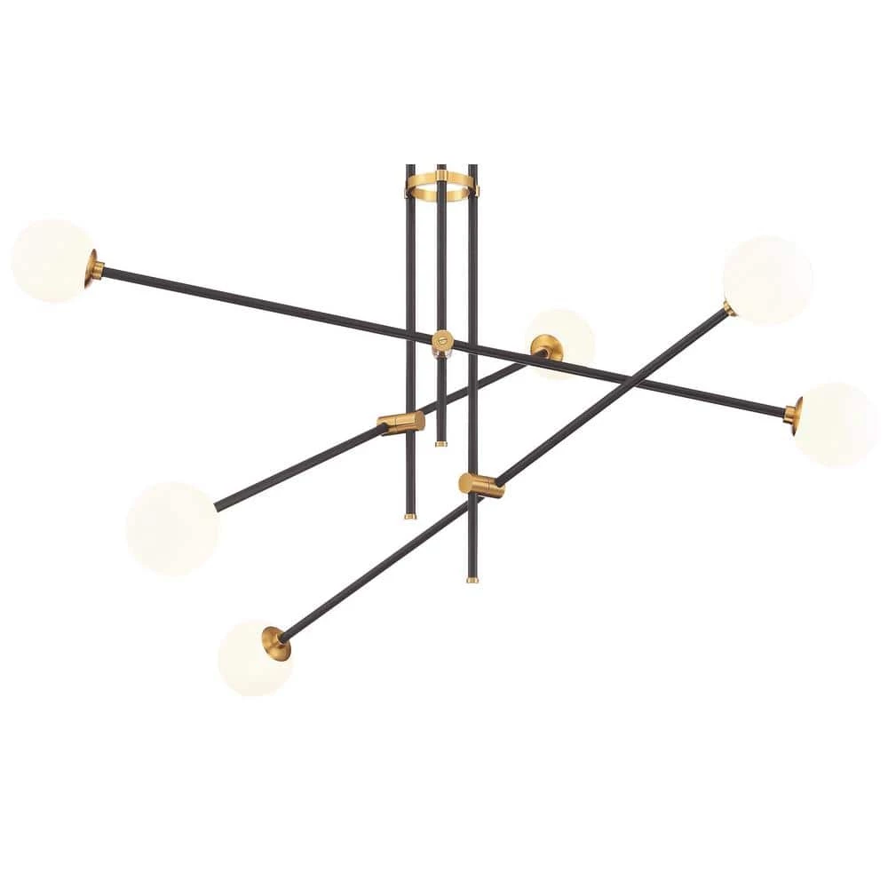 This George Kovacs contemporary and modern fixture is quite a find. Multiple arms with 6 illuminating brilliance are adjustable while suspended from a center point. A rich Black finish combined with opal glass globs ensure this fixture is ready for maximum exposer. The depth and clarity of this modern organic collection is a great source of multi-directional lighting