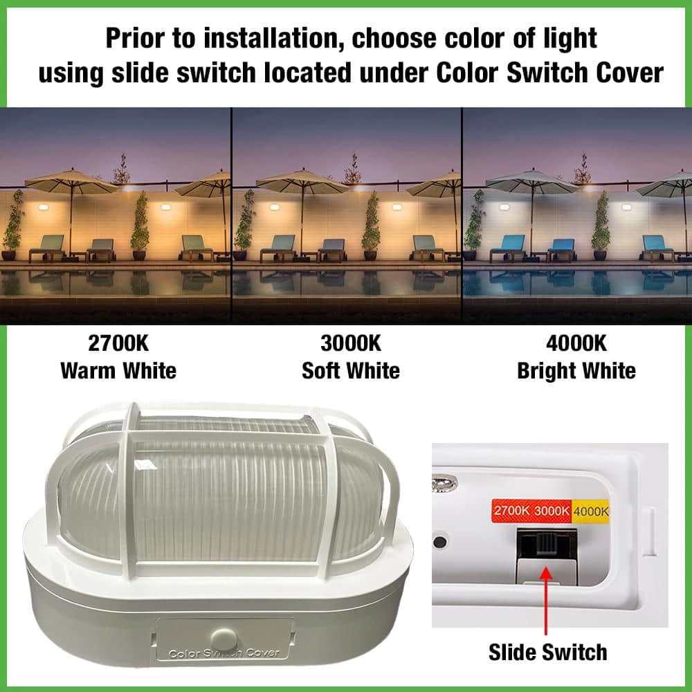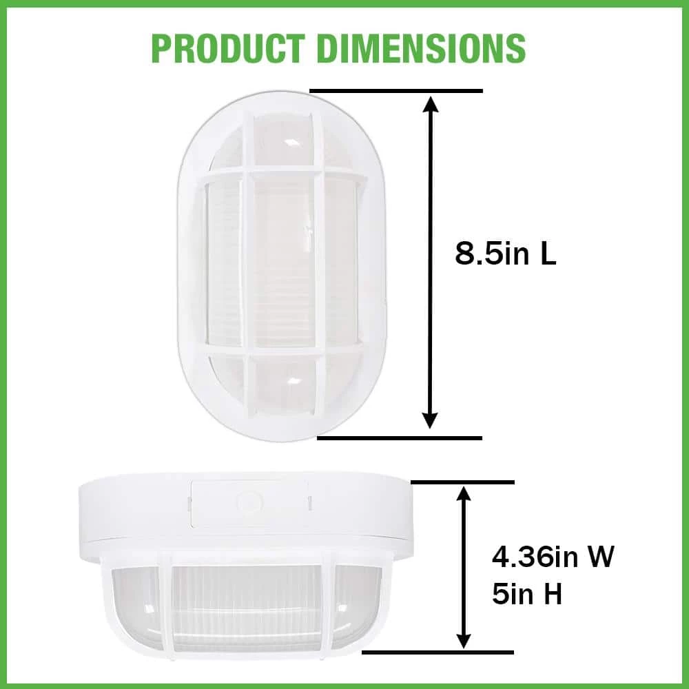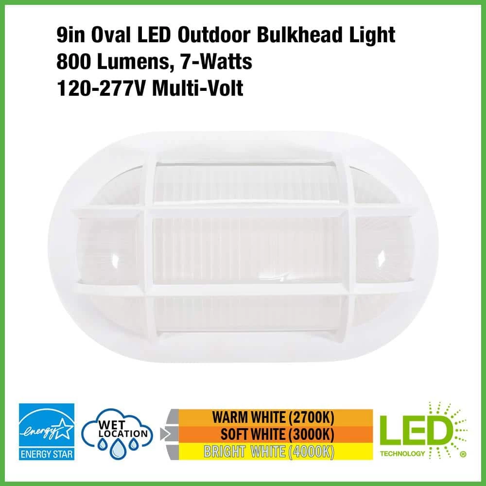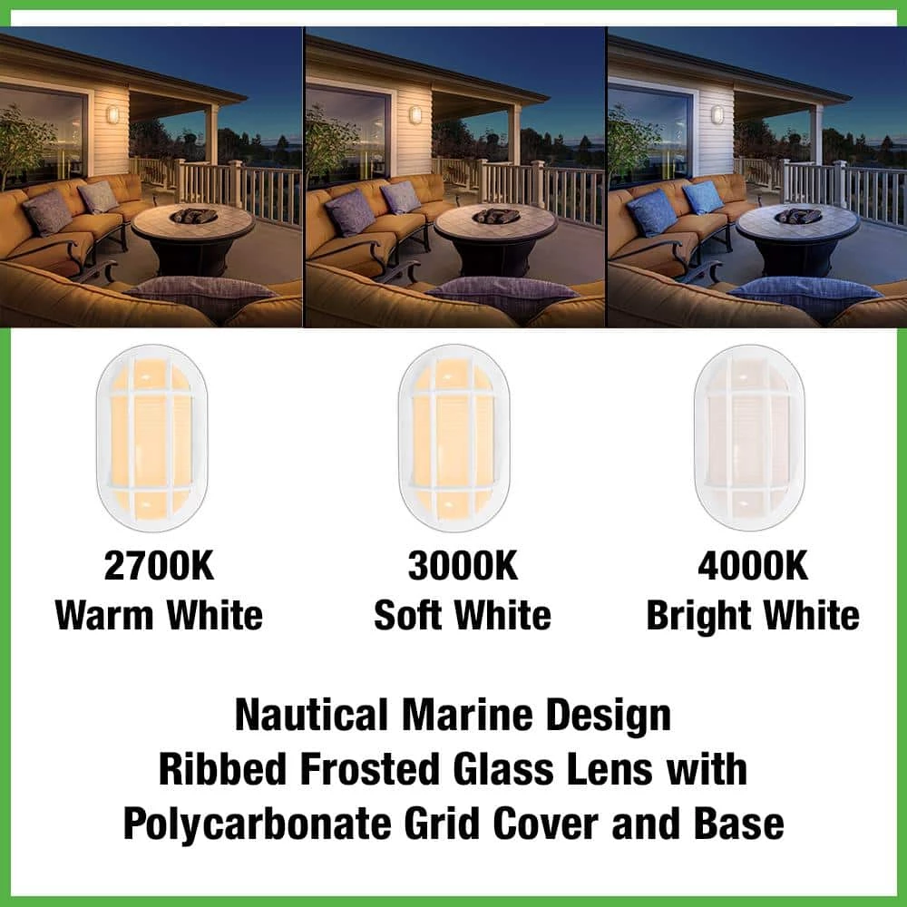 ETi 8.5 in. Oval TwistFit Marine Bulkhead is versatile and durable. Built tough to withstand the harshest weather conditions. The lens is made of frosted glass with a metal grid. The polycarbonate base is rust and corrosion resistant. Prior to installation, choose between 3 color temperatures of light output; Warm White, Soft White & Bright White depending on your location and needs. This light starts reliably even in unconditioned applications with sub-zero temperatures all the way down to -40°F! With our superior long-lasting light engine, this bulkhead light offers maintenance free service with no bulbs to replace. Great for entryways, porches, decks, docks, walkways, piers, bridge, fencing, sheds, storage facility and much more.