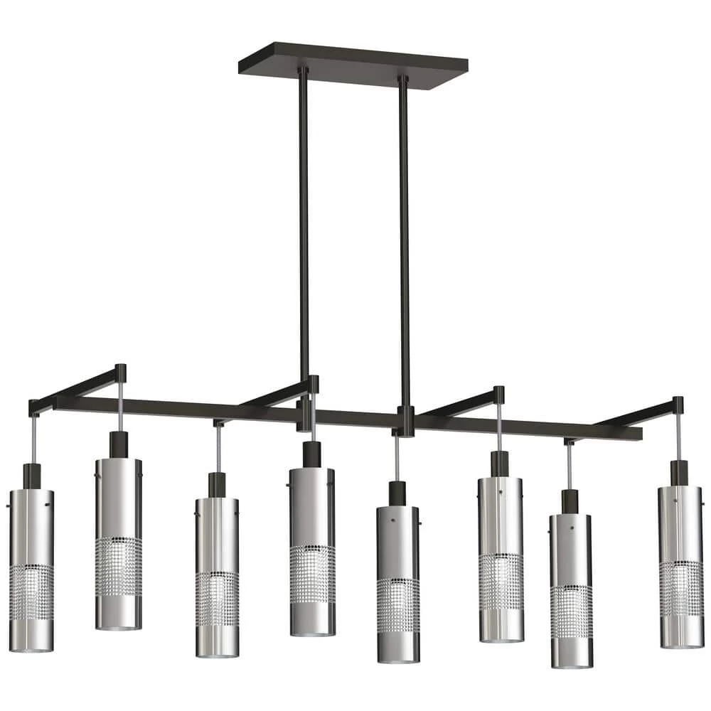 A continuing evolution of the Grid and Grid II Collections, Gird III combines a clean, Coal finish, geometric frame with an exclusive series of perforated, patterned, Brushed Nickel shades. Grid 3 designed by George Kovacs comes in 5 distinct styles: 1-light mini pendant, 4-light pendant which converts to a semi-flush, 3-light and 5-light chandeliers, and 8-light island chandelier. Clean, crisp, modern, the Grid 3 Collection is a great addition to the existing Grid families by George Kovacs.