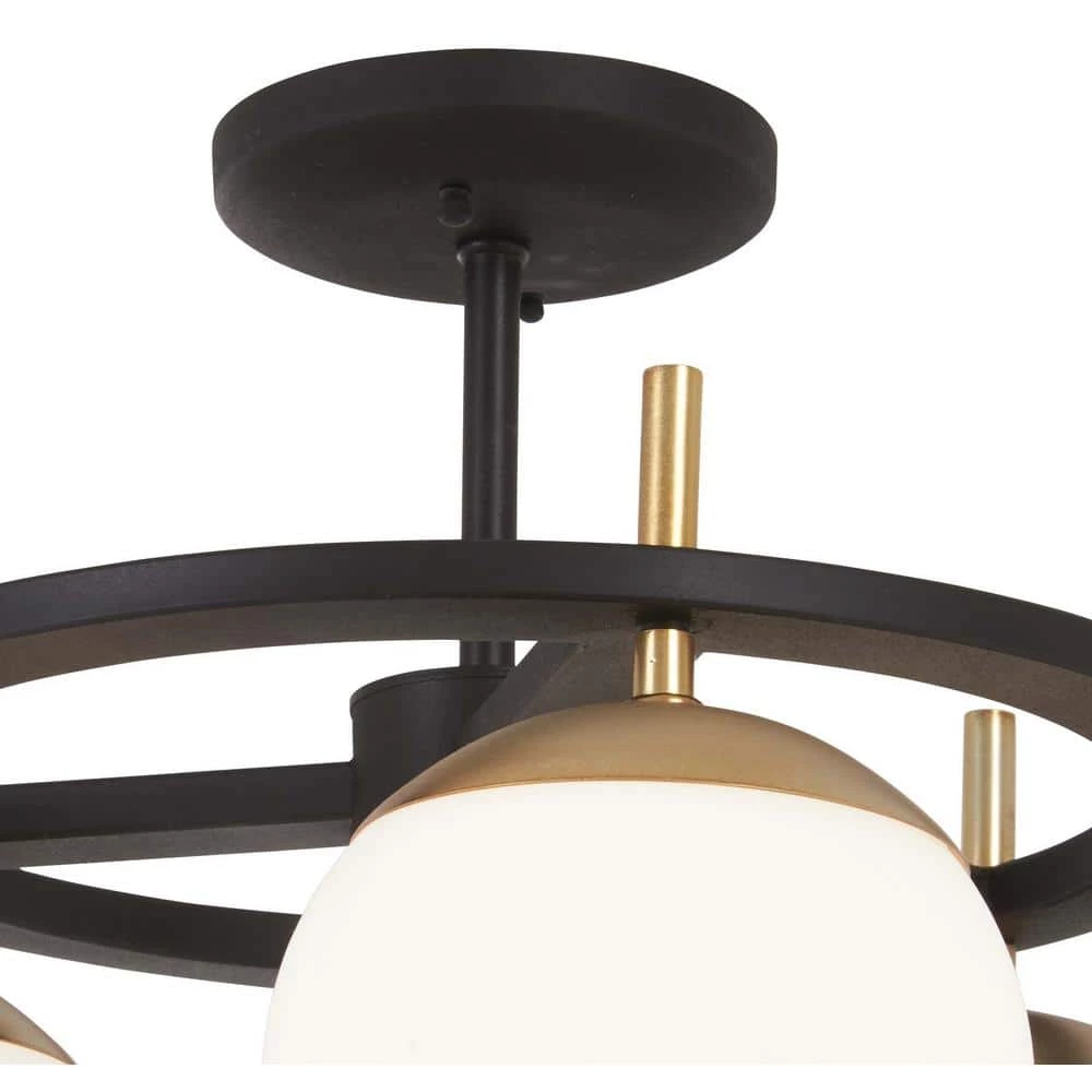 Alluring like the melody of a favorite song, perfect harmony is achieved by combining finishes and materials. A clean, minimalist style is amplified with Autumn Gold accents suspended from contrasting Weathered Black framework. Etched Opal glass globes shine in a dizzying array of styles for every conceivable setting. Elevate your minimalist interior with this bold, sculptural collection from the Alluria by George Kovacs.