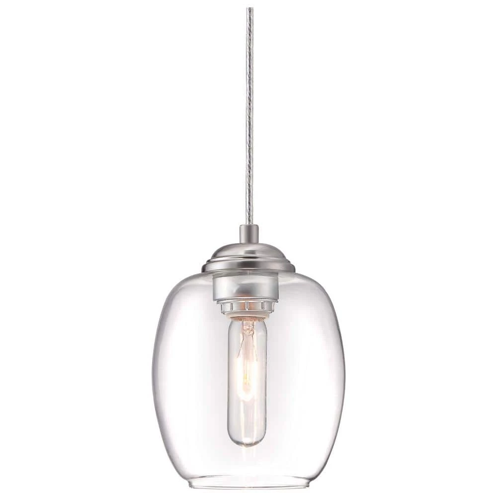 This George Kovacs mini pendant provides abundant light to kitchen Islands, bars and more from pendant which is convertible into a wall sconce. Offering unique vintage appeal, the fixture is finished in Brushed Nickel that pairs with a clear glass shade for bright illumination. It also features an adjustable hanging length to suit the needs of your space and coordinates beautifully with other pieces.