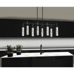 8-Light Coal and Brushed Nickel Island Chandelier Grid with Steel Shades by George Kovacs