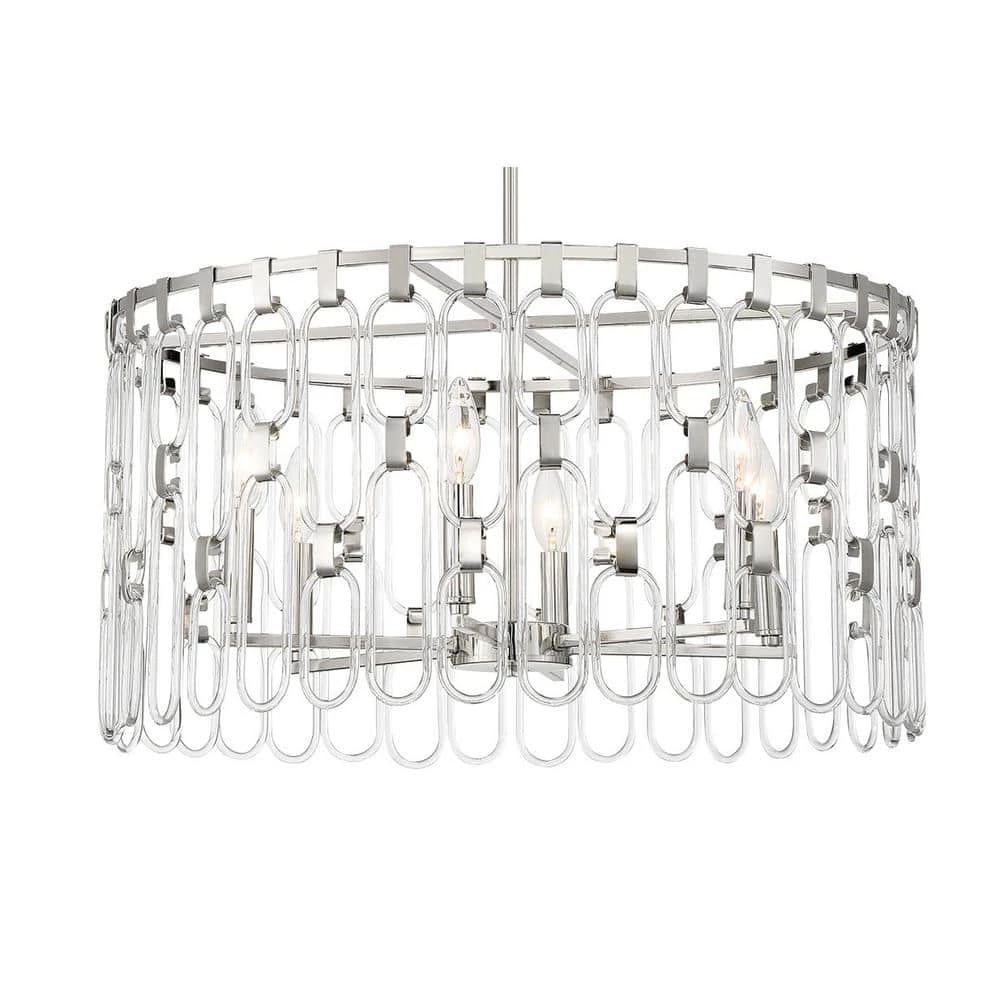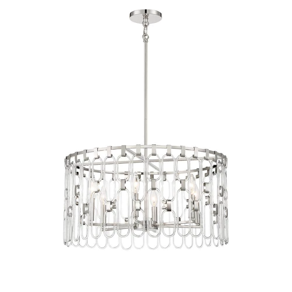 Clear loops of glass against a Polished Nickel frame transforms light into a glistening and brilliant work of art. The Charming Collection by George Kovacs is configured in five different pendant and chandelier designs which will satisfy your home decor needs and wants. The pendants are engineered to allow adjustable hanging height up to 36-inches. One four-light pendant can be easily converted to a semi-flush mount. Glamorous, dimensional, stylish, The Charming Collection, created and designed by George Kovacs, creates a beautiful effect of style and light.