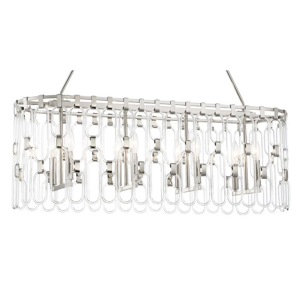Clear loops of glass against a Polished Nickel frame transforms light into a glistening and brilliant work of art. The Charming Collection by George Kovacs is configured in five different pendant and chandelier designs which will satisfy your home decor needs and wants. The pendants are engineered to allow adjustable hanging height up to 36-inches. One four-light pendant can be easily converted to a semi-flush mount. Glamorous, dimensional, stylish, The Charming Collection, created and designed by George Kovacs, creates a beautiful effect of style and light.