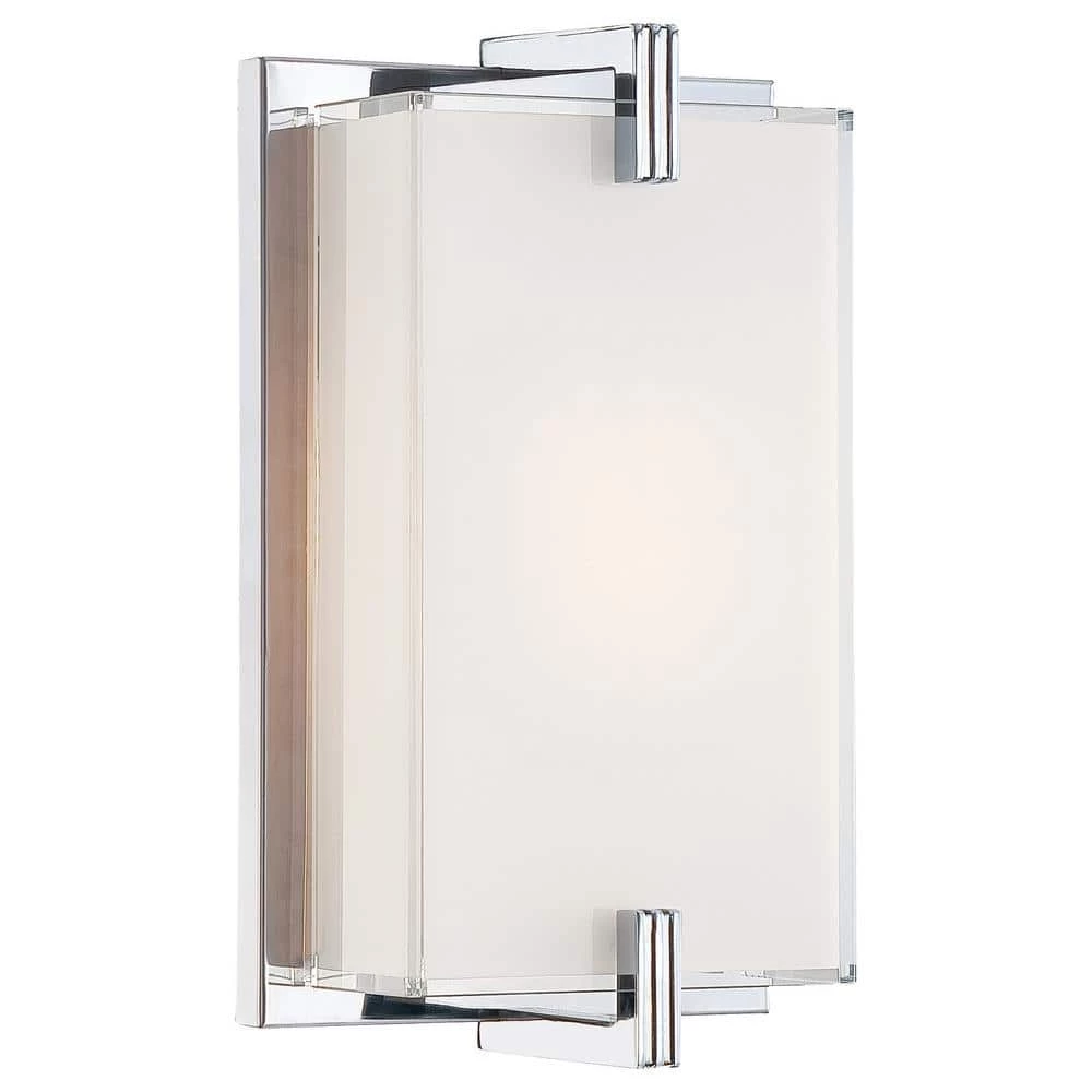 The George Kovacs Cubism Wall Sconce provides cool and clean style and light in even the tightest of transitional spaces. The mitered edges of the glass shade provide a sharp, clear transition between the White tone of the rest of the shade and the gleaming Chrome finish of the metal base. This George Kovacs chrome fixture is the perfect addition to your bathroom wall. ADA compliant.
