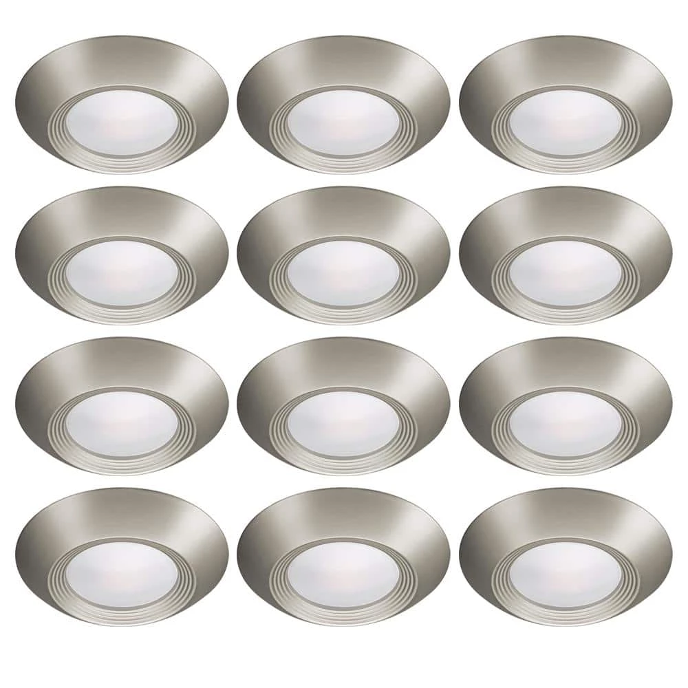 - Kit includes 12 disk lights and 12 brushed nickel trim covers