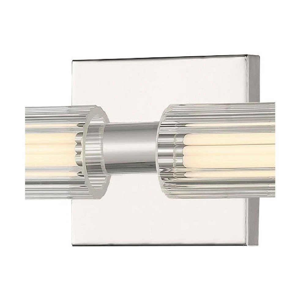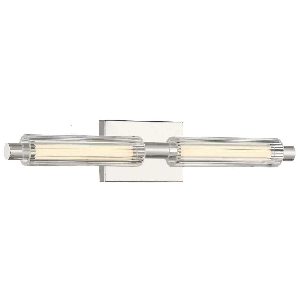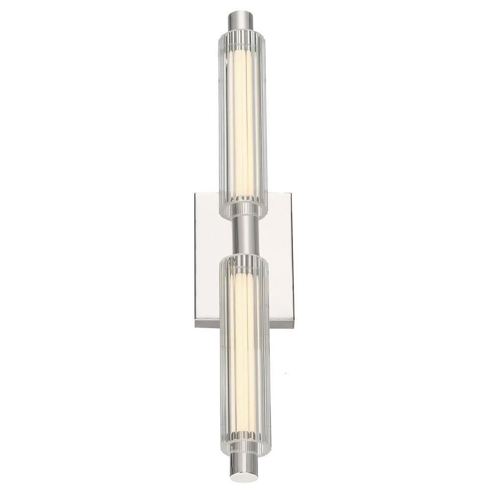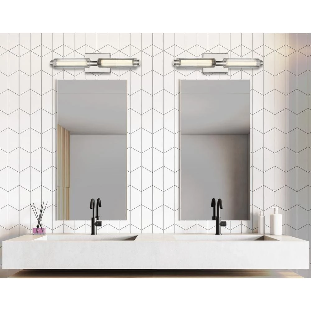 Fluted glass over Etched white Glass lends a depth of visual texture to any modern space. A glimmer of glamour is achieved with this unique diffusion of light. Double Barrel, our new vanity LED light collection designed by George Kovacs is now available in a 1-light and 2-light configurations. Clean, crisp and fascinating the Double Barrel Collection is suited for different size bathrooms and decor. Engineered to be installed in either up or down directions. Another great LED vanity light collection, Double Barrel designed by George Kovacs will light up your day and night.