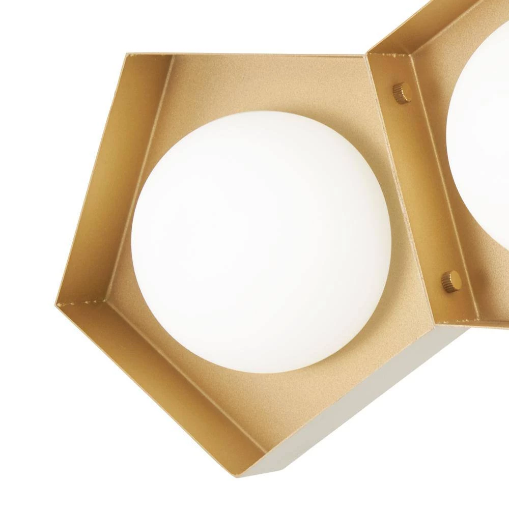 Bold with a hint of gold. Pentagons brimming with gold are pierced with globes of etched white glass in this unique Five-O LED collection by George Kovacs. The rich gold interior casts an opulent effect when the LED bulb is illuminated within these industrial configurations, all encased in a textured white finish. Gold accents on the globe add an extra touch of flair, offering this LED collection an excellent choice for your home.