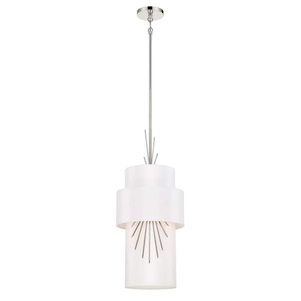 - Featuring a polished nickel finish with a white silk cloth shade