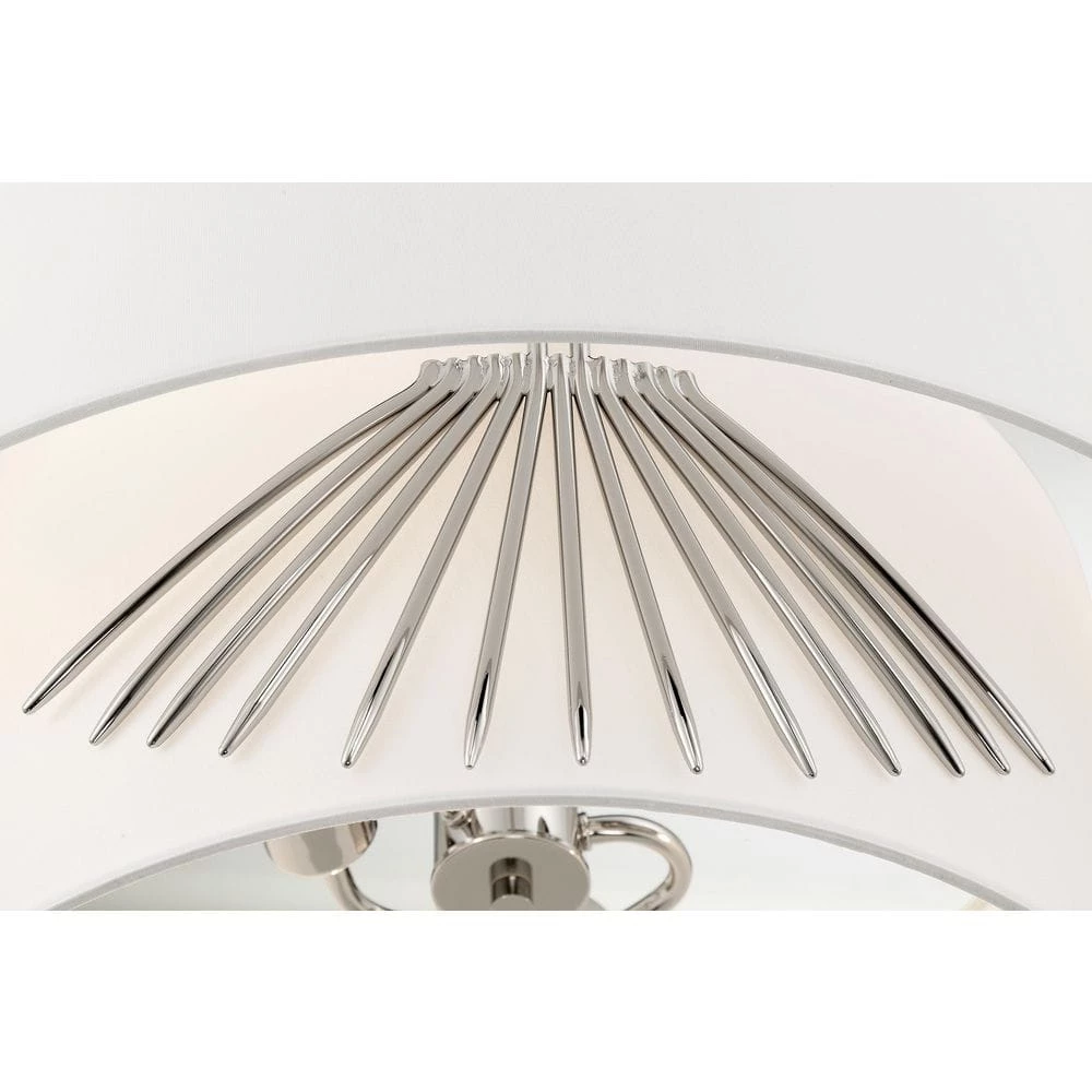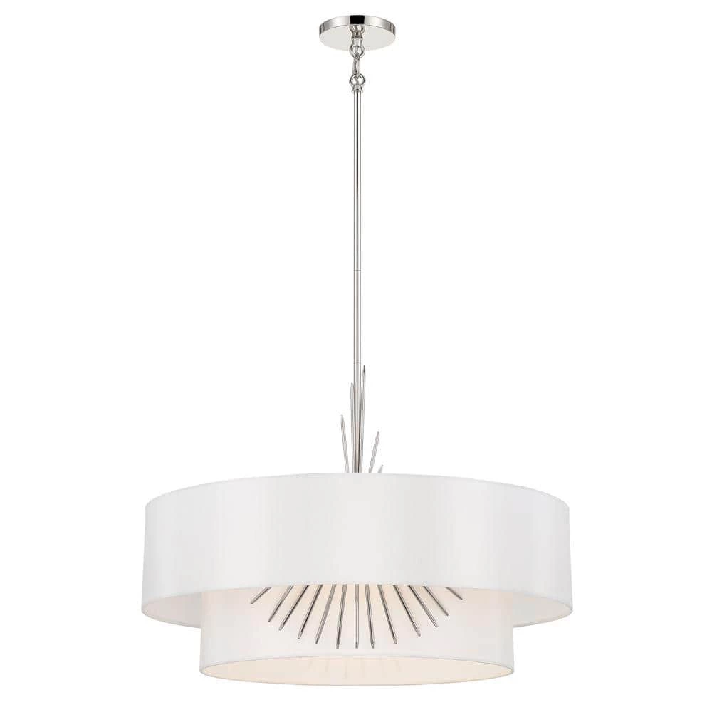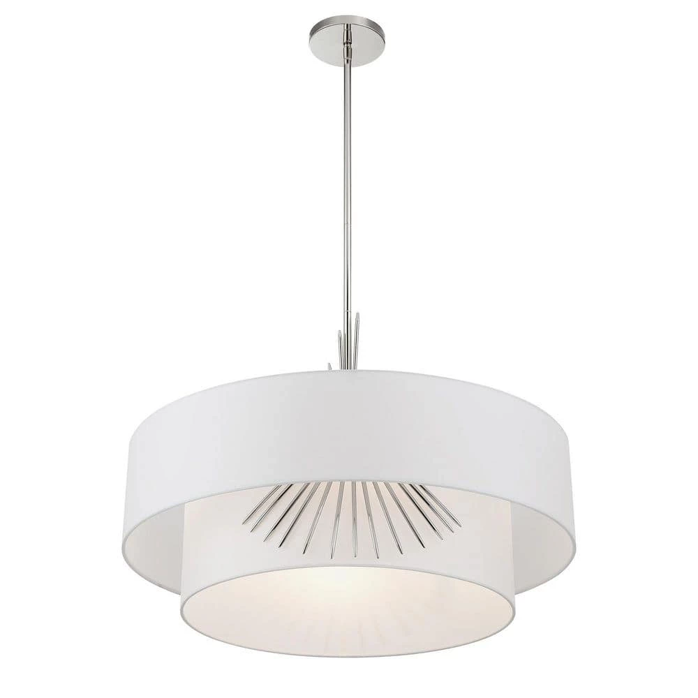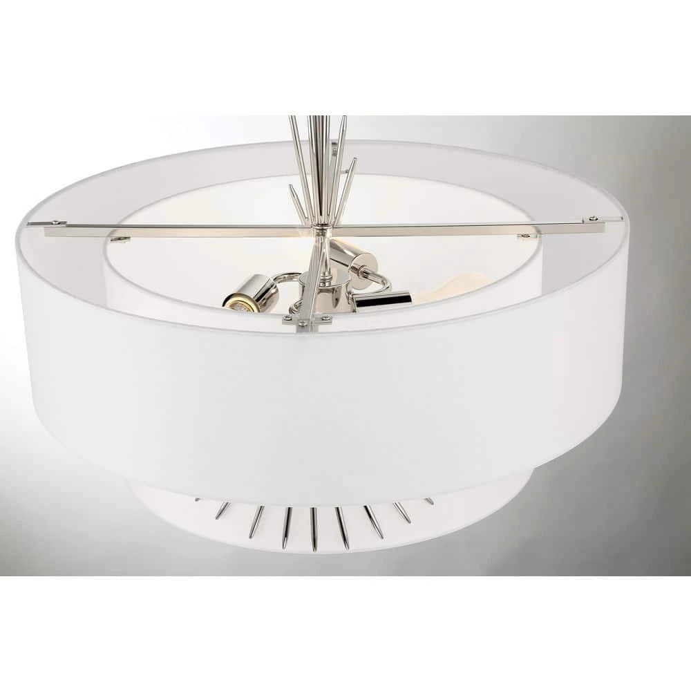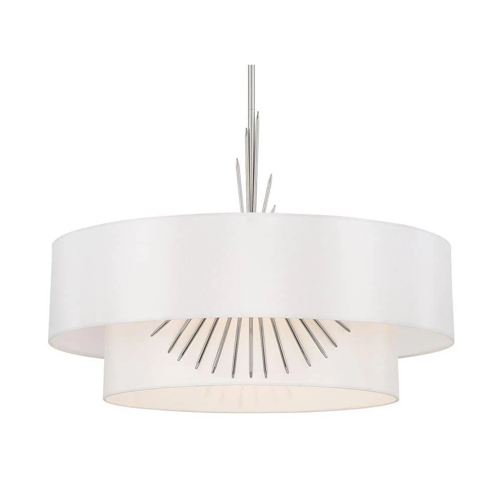 - Featuring a polished nickel finish with a white silk cloth shade