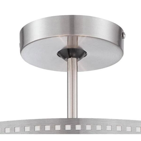 With the fluid look of draped steel, the George Kovacs Grid Semi-Flushmount adds a modern, yet soft accent to contemporary decor. Designed by Dawn Ladd and Rachel Simon, it allows light to shine through precise rows of square perforations. The brushed nickel finish gives it its inherent sheen, even when turned off.