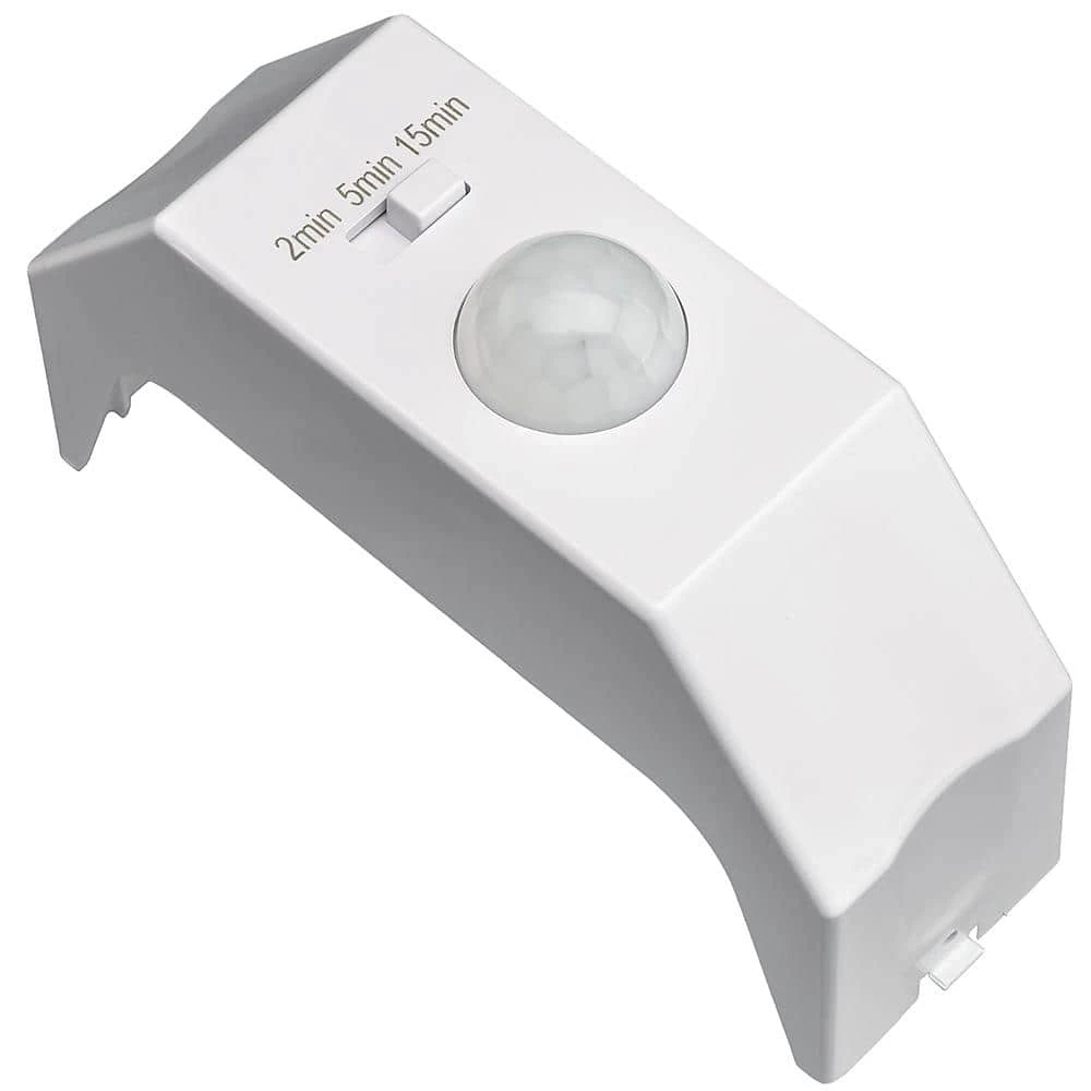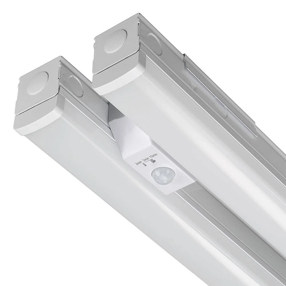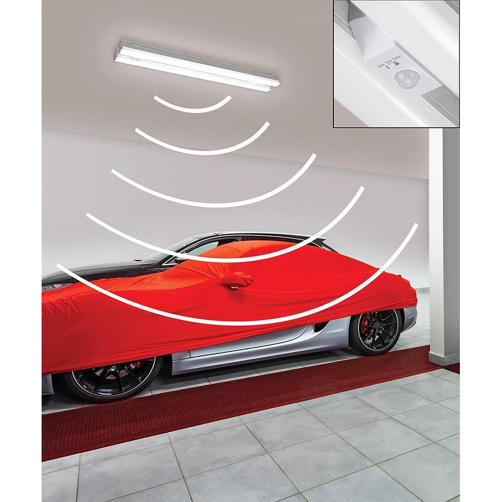 ETi’s High Output Motion Sensor Accessory is compatible ONLY with Commercial Electric’s 4 ft. High Output Commercial Strip Light – Store SKU# 1004330413 / Model # 54598141. The motion sensor fits in between the lights (see pic) while in tandem or side-by-side configuration. There are 3 timer selections: 2 min/5 min/15 min. Using a motion sensor is extremely helpful especially when your hands are full of tools, equipment, boxes or covered in mud. This accessory will save energy, the environment and your wallet.