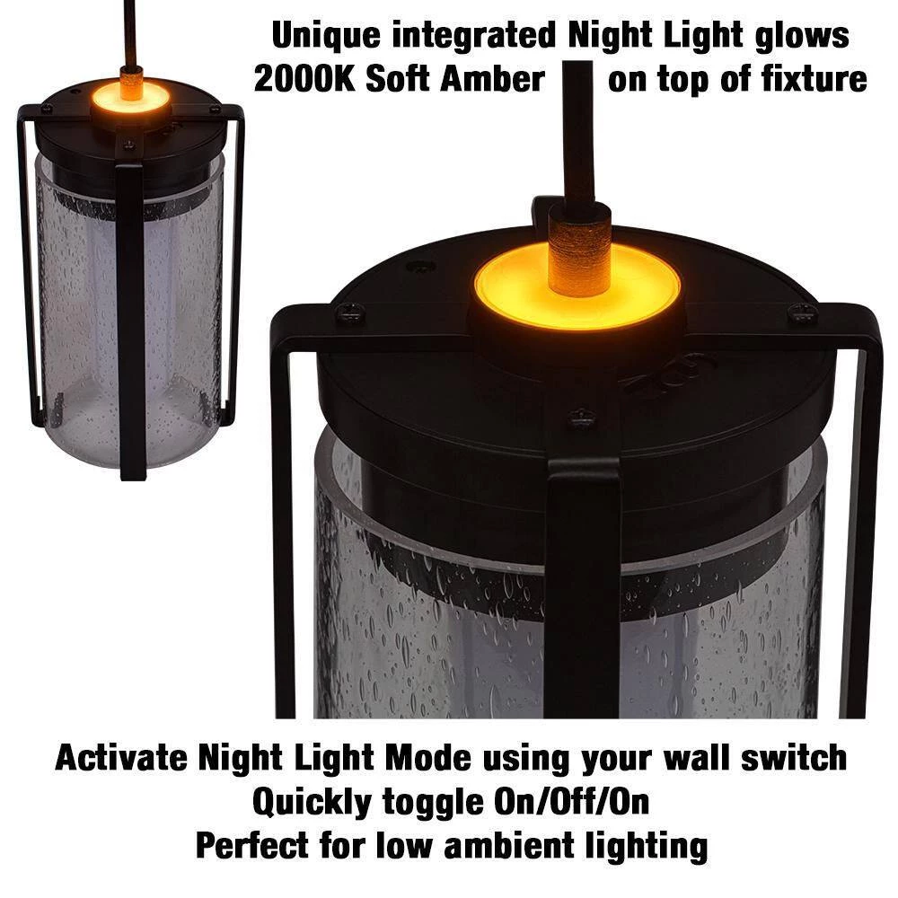 - NIGHT LIGHT FEATURE: Glows 2000K Soft Amber hue where the stem and top of pendant connect – Ideal for reduced light output