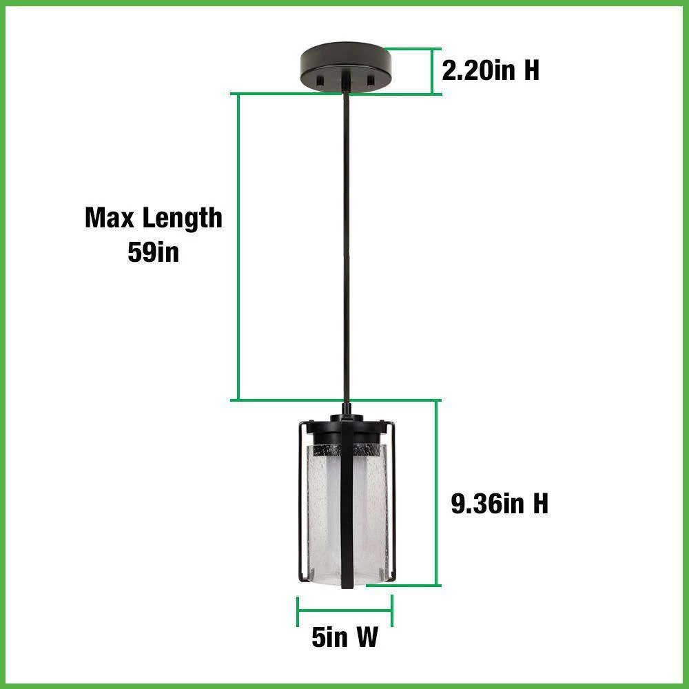 - PRODUCT DIMENSIONS: Pendant Only: 9.36in L x 5in W x 9.36in H – Stem Only: Max length 59in – Fixture Canopy Only: 5in L x 2.20in H