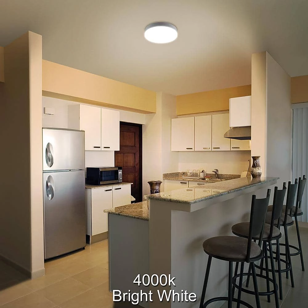 ETi’s 7 in. Low Profile Integrated LED Flush Mount Ceiling Light with Contemporary smooth lens offers a clean and simple design all while providing the latest premium LED technology. It emits 810 Lumens of brightness with 4000K Bright White color temperature using only 11.5-Watts of power. This reduces energy consumption by as much as 81% compared to conventional light units. This high quality LED fixture replaces hot and harmful 60-Watt incandescent bulbs saving electricity, the environment and your wallet. Ideal for kitchens, bedrooms, bathrooms, closets, stairways, hallways, basements, laundry room, playroom or home office.