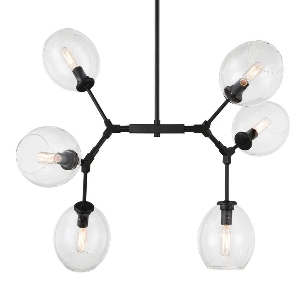 - Featuring a Coal finish with Clear Glass Orb Shape shades