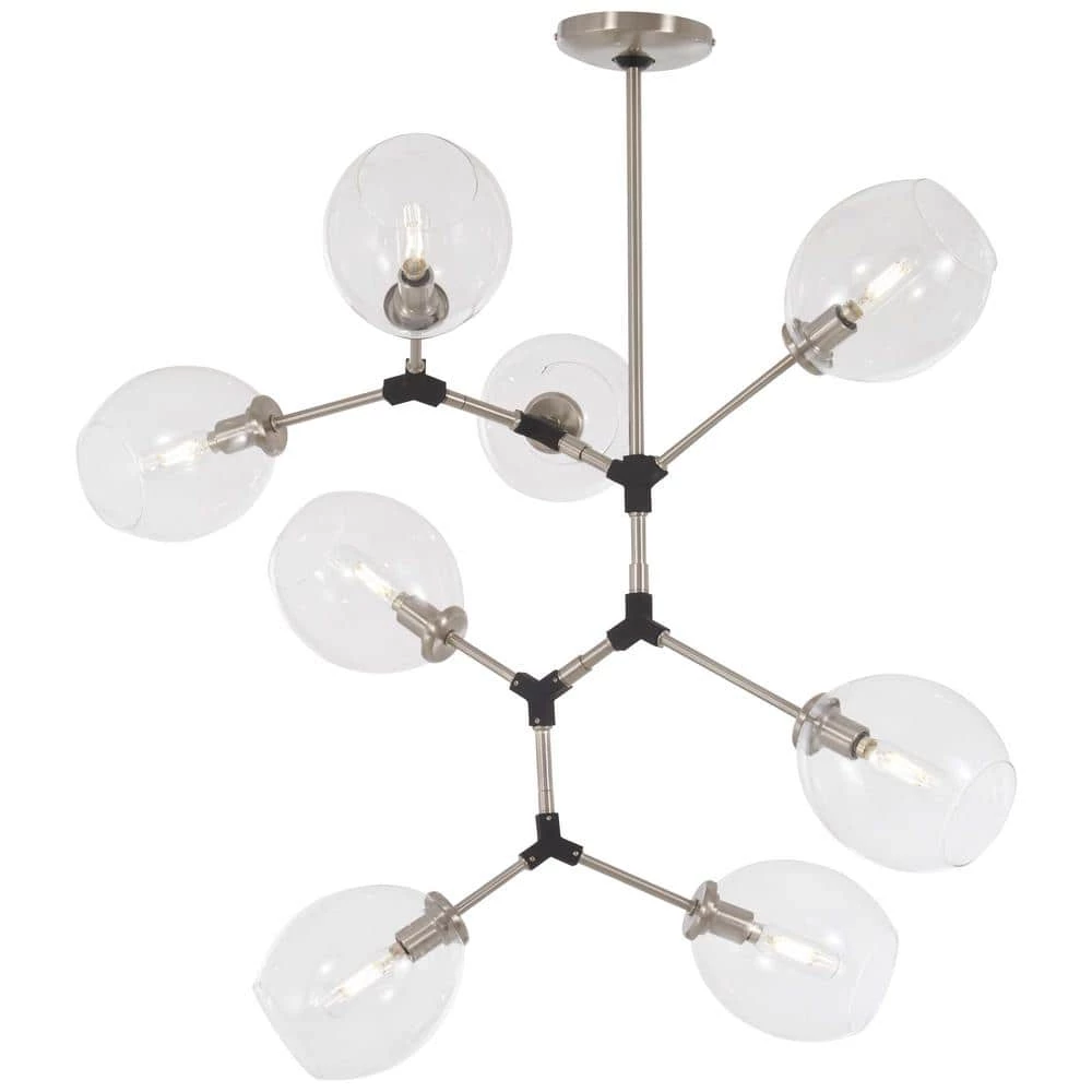 Like a trees branches stretching towards the light, Nexpo by George Kovacs blooms with its elongated configurations while delicately balancing Clear glass buds of illumination. Brushed Nickel with Black accent connections emphasizes the depth and clarity of this modern organic collection. This fixture is a great source of multi-directional lighting.