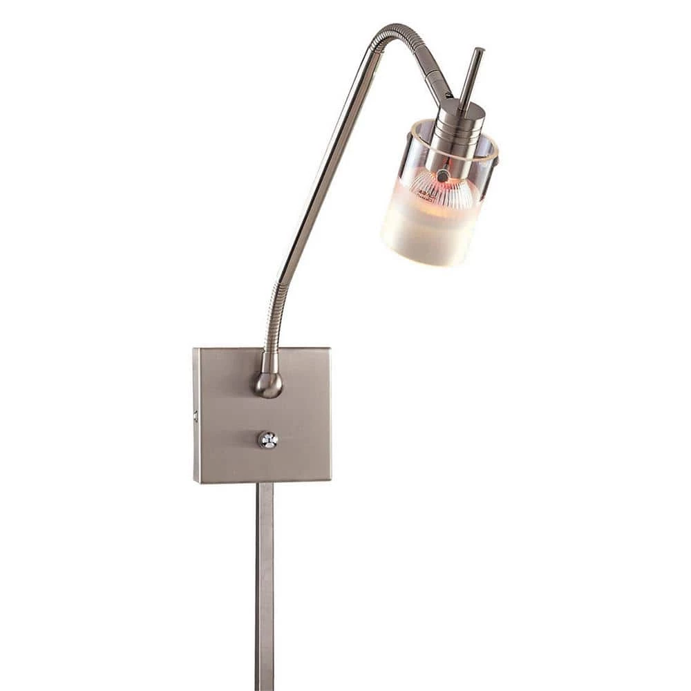 This Brushed Nickel one Light Low Voltage Wall Lamp from Pierce George Kovacs is a great example of contemporary lighting. Pierce wall arm features Clear and Acid Etched glass shade and one 50-Watt 120 volt MR16 halogen lamp included. Convertible to pin up lamp.