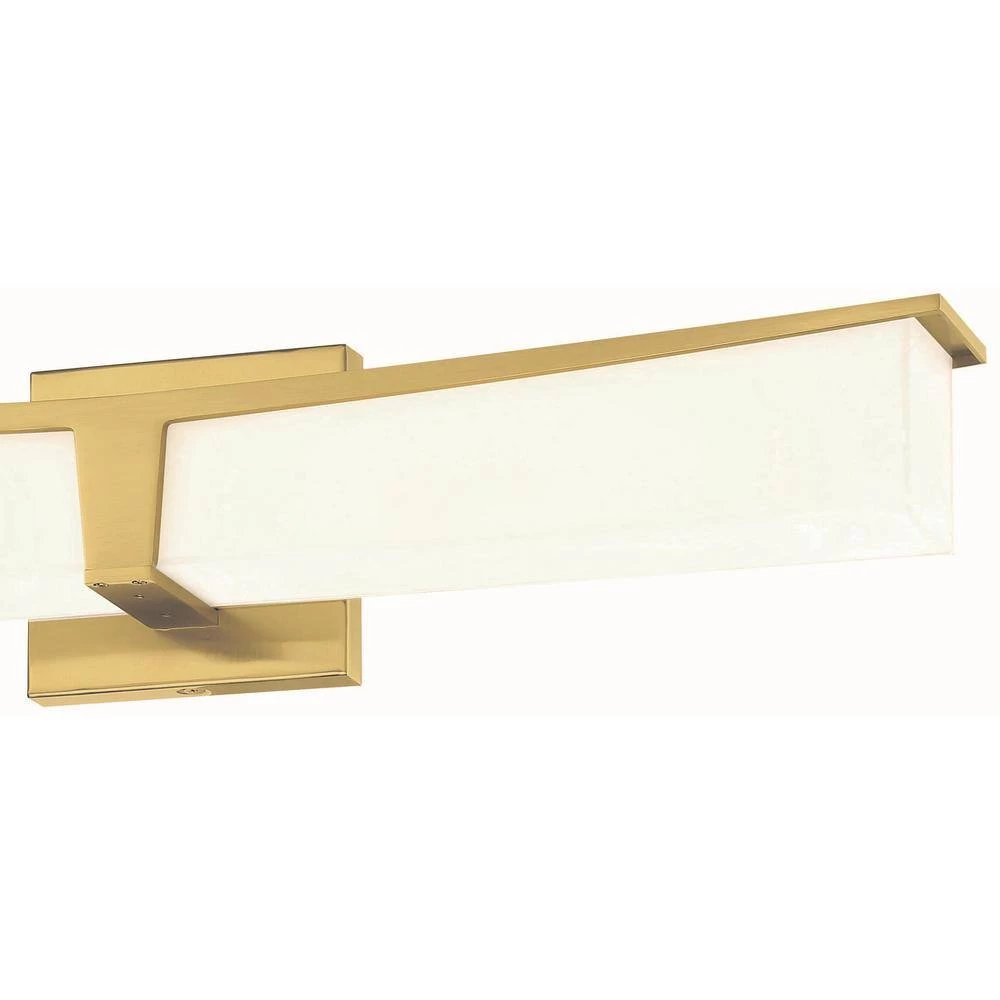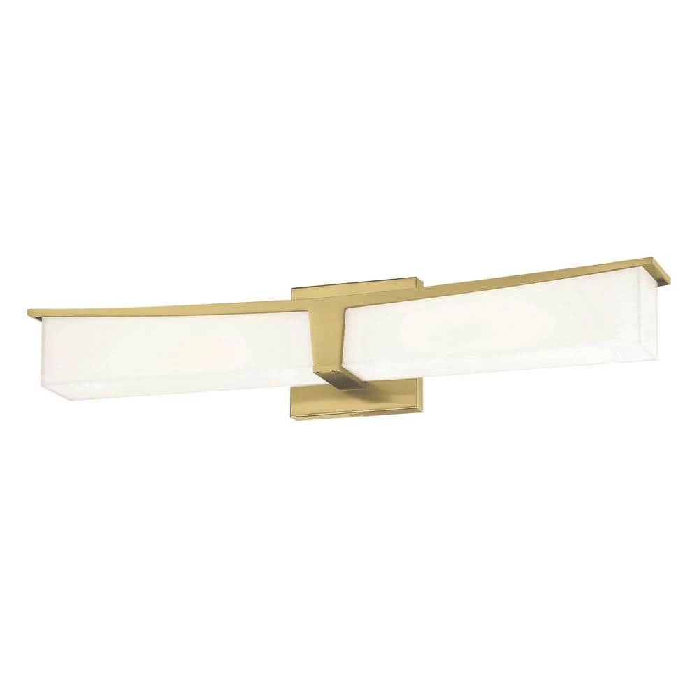The 24 in. PLANE LED Vanity light from George Kovacs provides a dramatic addition to any bathroom. The Honey Gold finish and Frosted Aquarium Glass sets the standard in contemporary vanity lighting. The 30-watt integrated LED produces over 1900 Lumens to light the largest of bathrooms. Other benefits from the LED light source in the vanity fixture is that it also generates 85% less heat than a typical incandescent fixture helping to keep your bathroom or powder room cool and with the integrated LED light source there are no bulbs to change. Other benefits from the LED light source is that it also generates 85% less heat than a typical incandescent fixture helping to keep your bathroom or powder room cool.