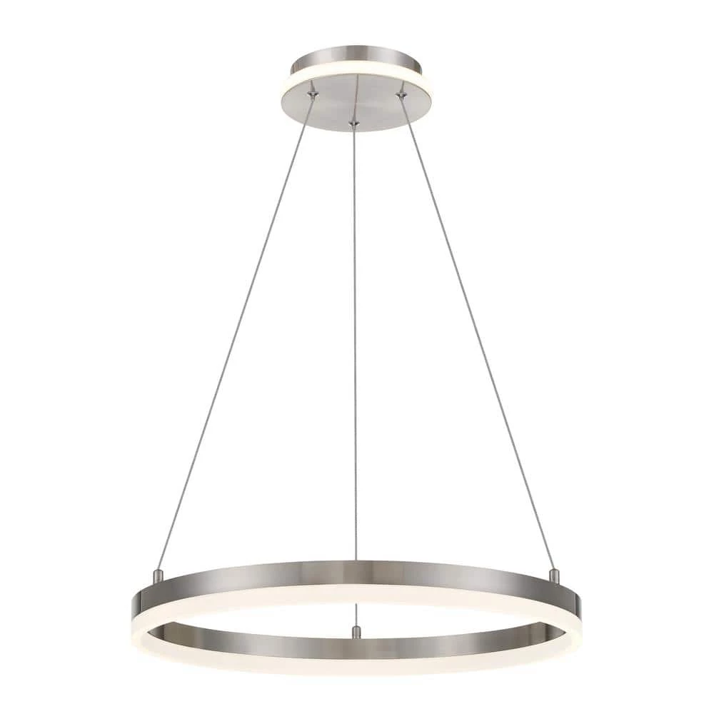 A clean contemporary LED styling accented by Brushed Nickel or Coal finish rings set the tone for a modern environment. Recovery, the new LED pendant collection designed by George Kovacs Lighting. 2 different lighting fixtures, both featuring an ambient light ring integrated into the canopy. Engineered with an adjustable hanging height up to 67.25 in. Clean, refreshing, modern, The Recovery Collection, created and designed by George Kovacs Lighting will set the mood for present-day.