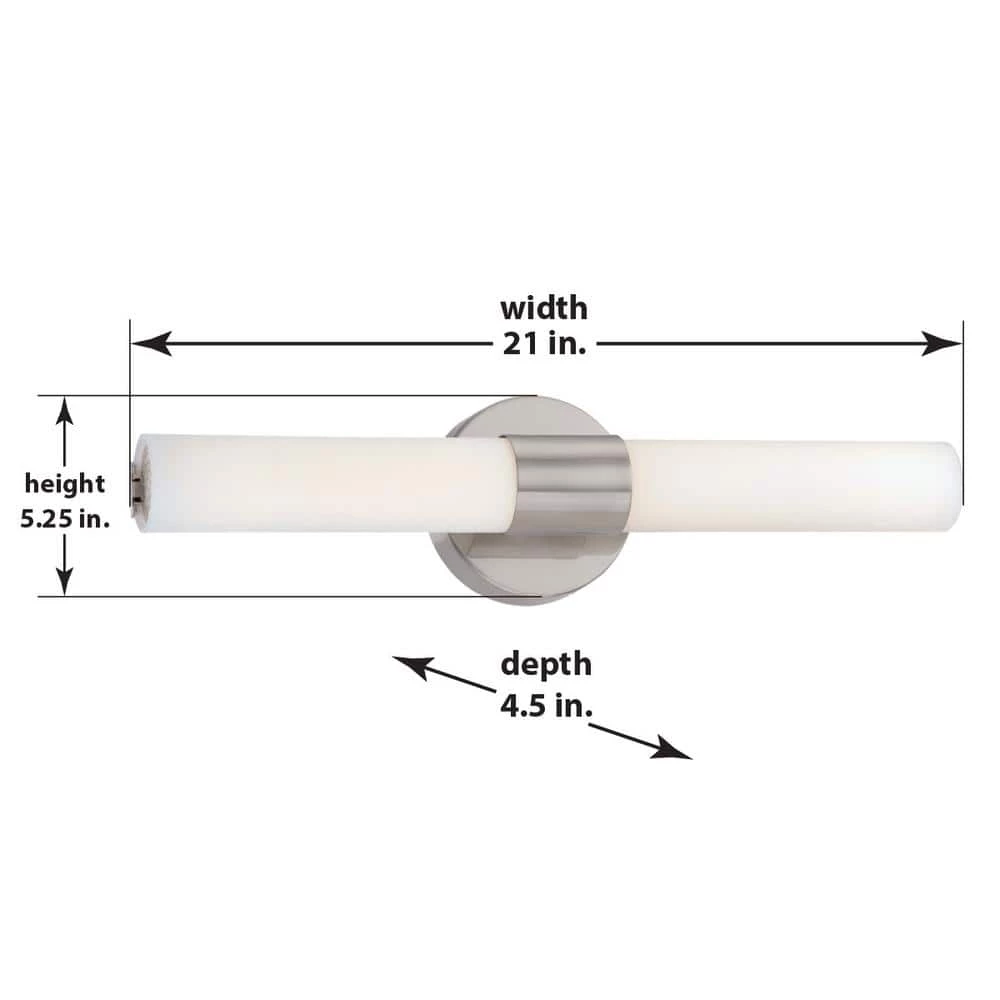 With streamlined, contemporary design, the George Kovacs Saber Bath Bar envelops whatever space it’s in in soft, flattering light. It features a Brushed Nickel finish and tubular cased Etched Opal glass shade that gently diffuses the light of two lamps. This George Kovacs fixture comes in a wide range of metallic finishes.