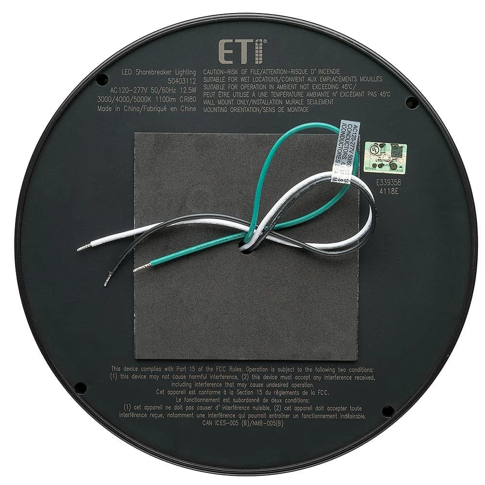 ETi Shorebreaker 10 in. Black LED Outdoor light is versatile, durable, eye-catching and made to withstand anything Mother Nature can deliver. It emits 800 Lumens of light output and 3000K Soft White is the light’s color temperature and color hue. This light is lightweight, easy to install and has two mounting options; wall mount and ceiling mount. ETi’s Shorebreaker light will complement your decor and add a welcoming ambiance to any porch, patio, deck, dock or walkway.