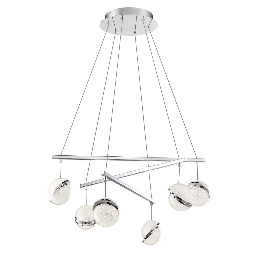 With light dancing through encased crystals and its skewed angels, Silver Slice LED by George Kovacs takes modern orb lighting to the next level. A plethora of design styles from pendants, chandeliers and bath bars emphasize the modularity and adaptability of this intriguing lighting series in Integrated LED lighting. An attention-grabbing piece whether used in multiples or hanging out solo.